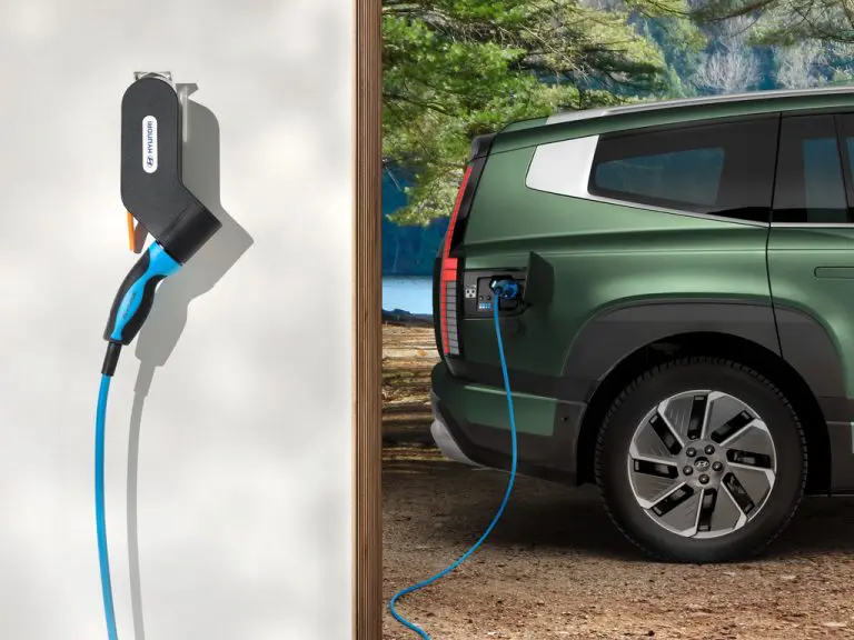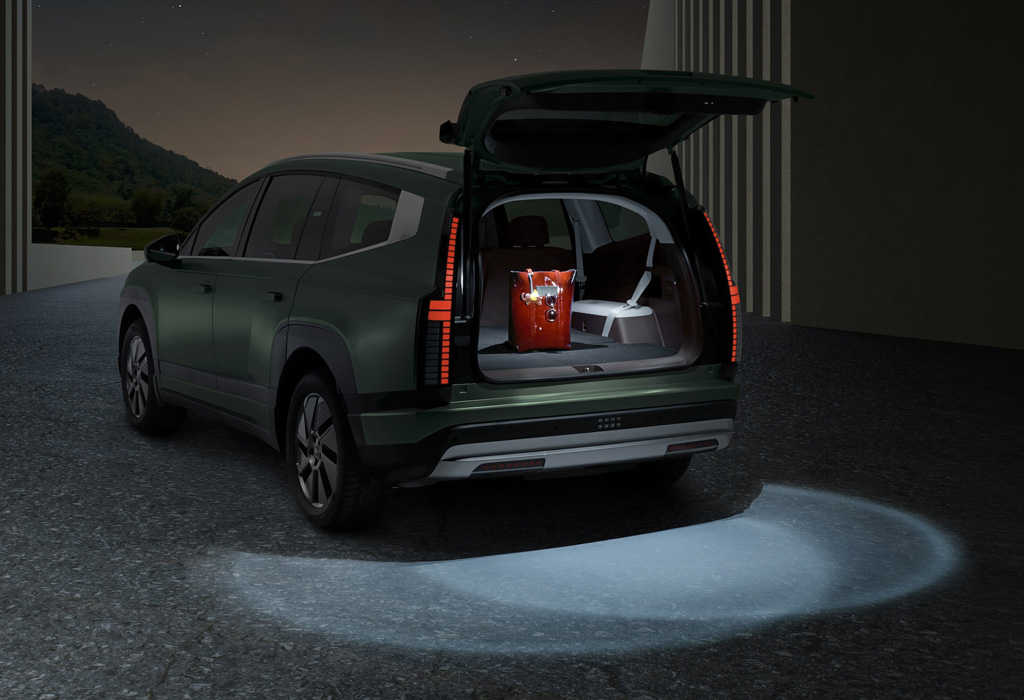 С технологией Vehicle-to-Load (V2L) IONIQ 9 вы можете запитать любое устройство или зарядить электрооборудование мощностью до 3,6 кВт с помощью встроенной розетки 230 В или внешнего зарядного порта.