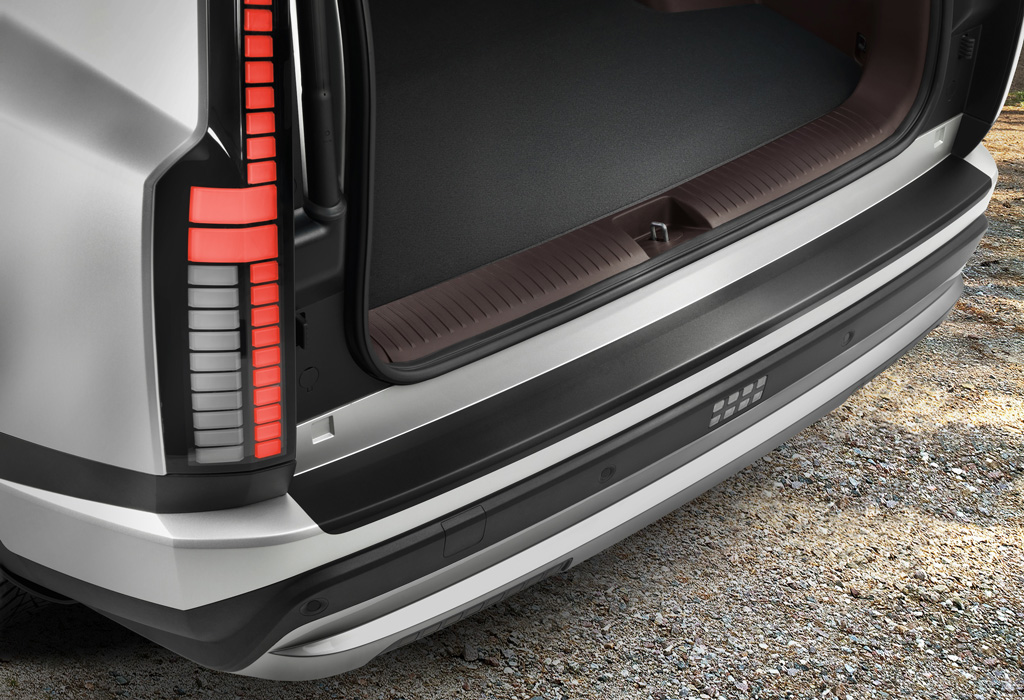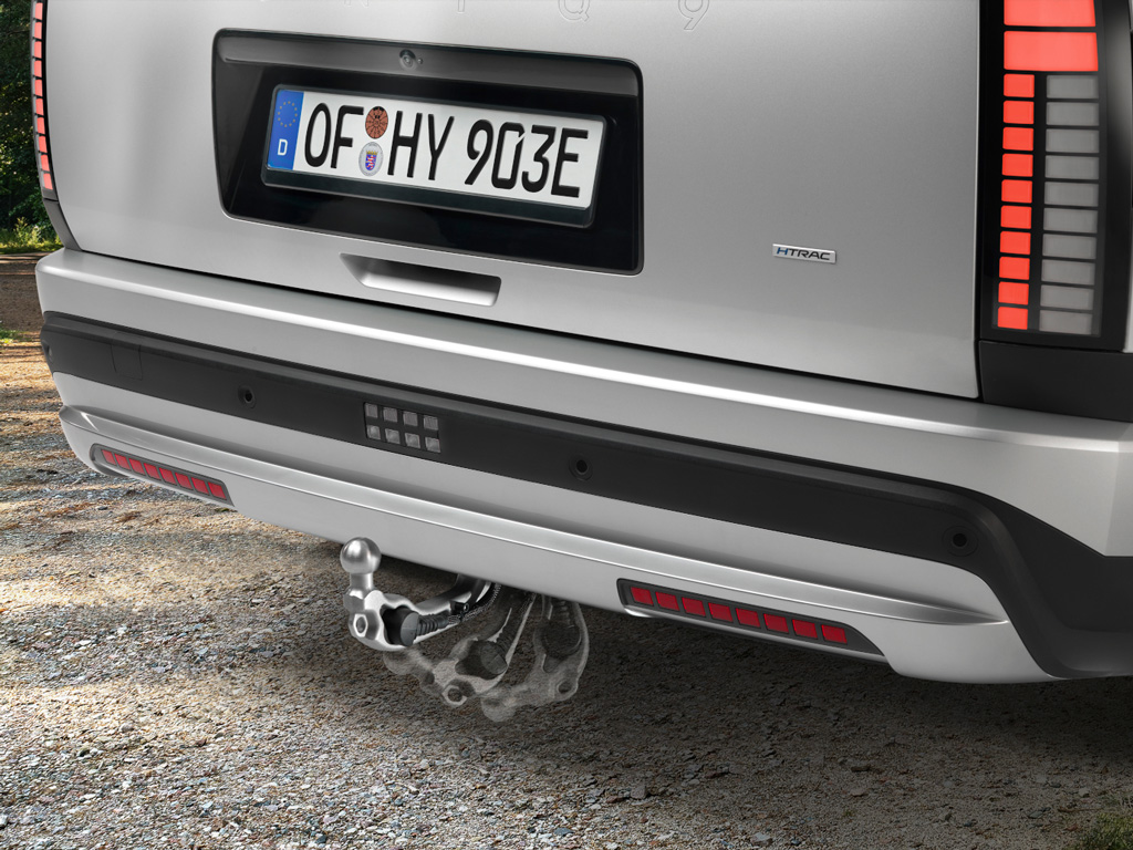 Задняя часть, напоминающая корму лодки, продолжает тему бесшовной «пиксельной» эстетики. К фаркопу можно подсоединить прицеп массой до 2500 кг.